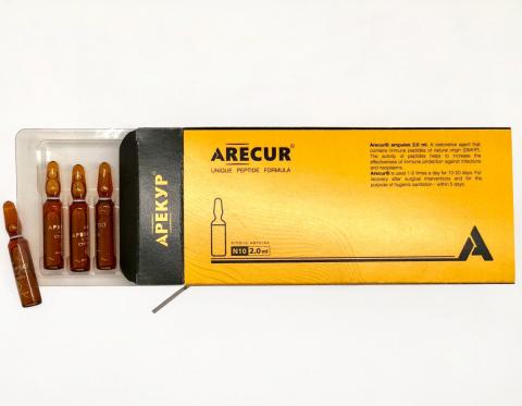 1) Інгаляції: 1 амп Арекур® та 4 мл ізотонічного розчину натрію хлориду або води для ін’єкцій додати у небулайзер та дихати протягом 7-10 хв 1 раз на добу. Курс – 10 інгаляцій. 2) По 1 амп Арекур® в/м 2 рази на день протягом 20 днів, через 10 днів курс повторити; в окремих випадках за призначенням лікаря імунокорекція проводиться 2 - 4 рази на рік |
